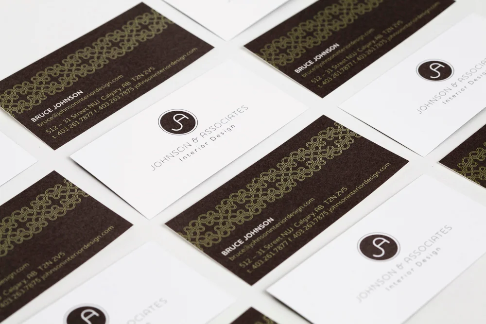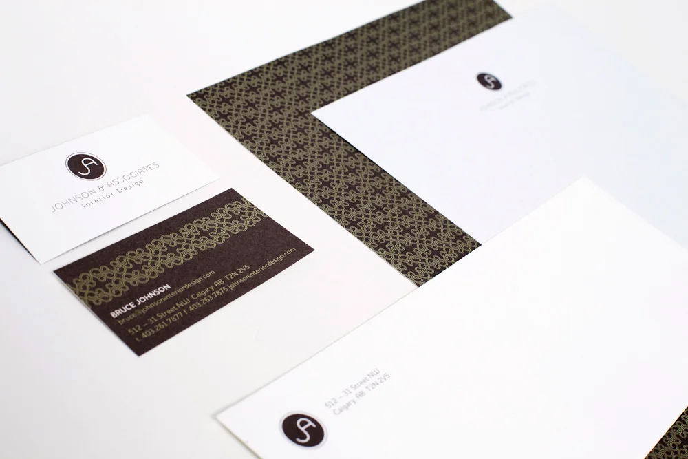 This interior designer wanted an identity that was clean and included a custom pattern, as patterned fabric plays a large part in his industry. I created one, l derived from an ampersand.
